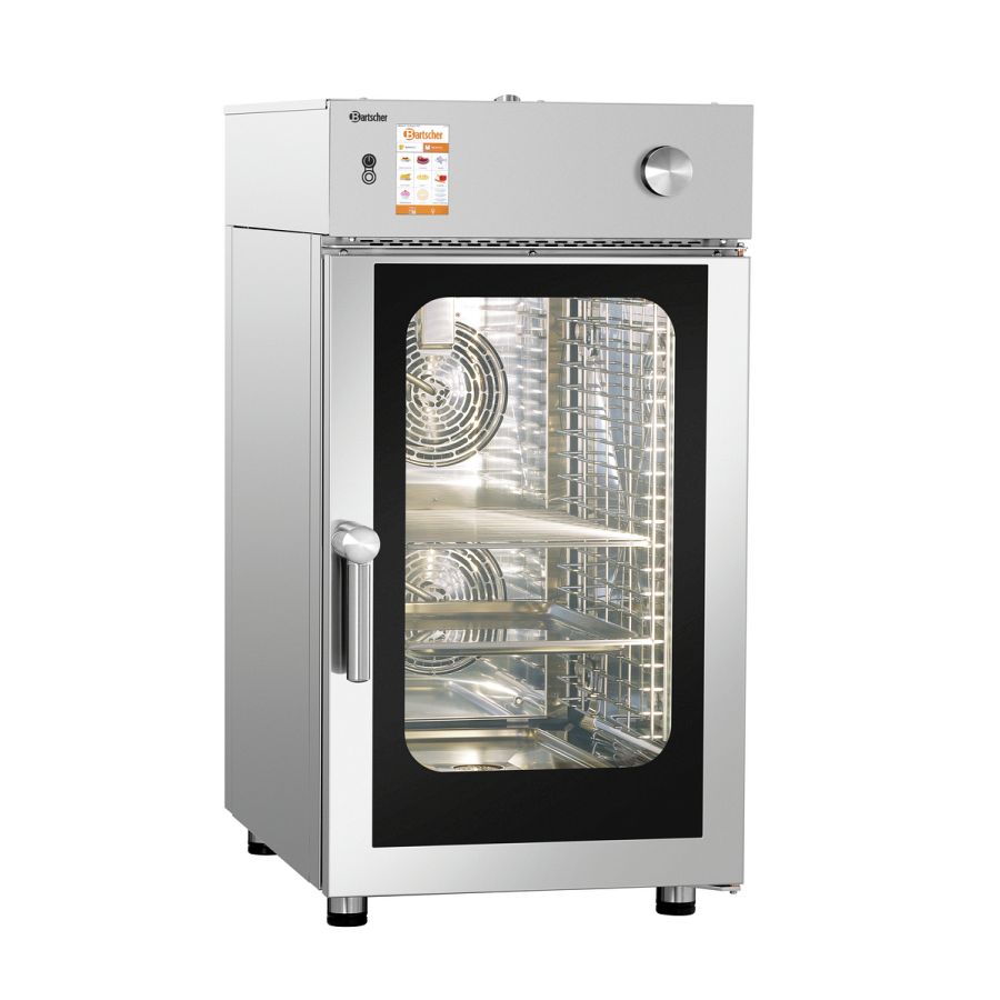 - Funktionen: Umluft, Dämpfen, Kombidämpfen, Niedertemperaturgaren, Delta-T-Garen, Reversierender Motorlauf (Lüfterräder), Dampferzeugung durch Direkteinspritzung, Cooldown in Garphase