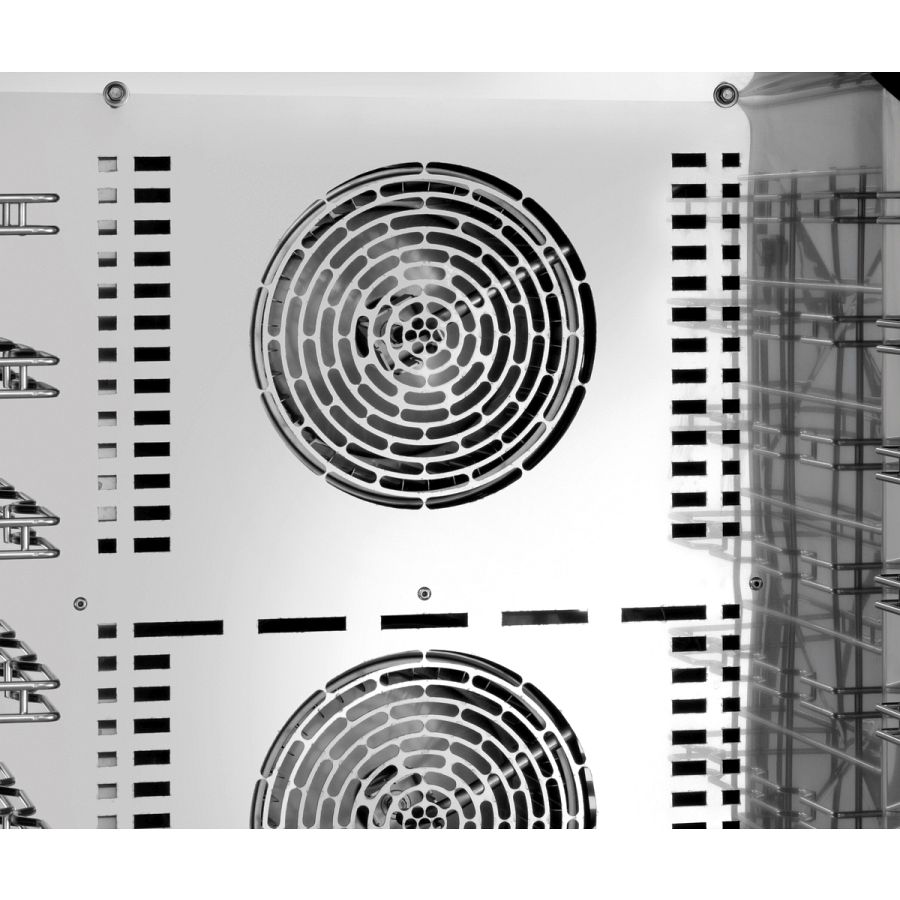 - Funktionen: Dampferzeugung durch Direkteinspritzung, Dämpfen, Delta-T-Garen, Kombidämpfen, Niedertemperaturgaren, Reversierender Motorlauf (Lüfterräder), Umluft, Cooldown in Garphase, Manuelle Beschwadung