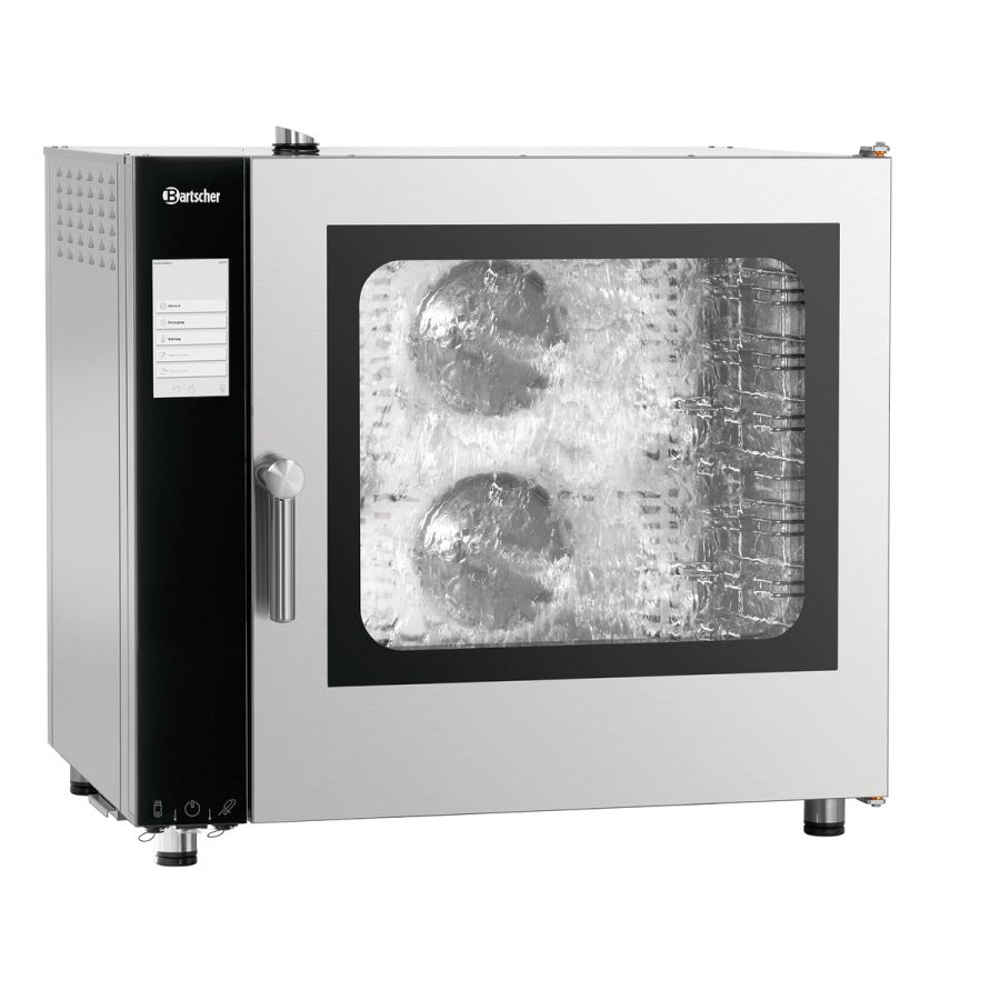 - Funktionen: Automatisches 3-stufiges Reinigungssystem mit Trocknungsprogramm, Dampferzeugung durch Direkteinspritzung, Dämpfen, Delta-T-Garen, Kombidämpfen, Niedertemperaturgaren, Reversierender Motorlauf (Lüfterräder), Umluft, Cooldown in Garphase, Manuelle Beschwadung