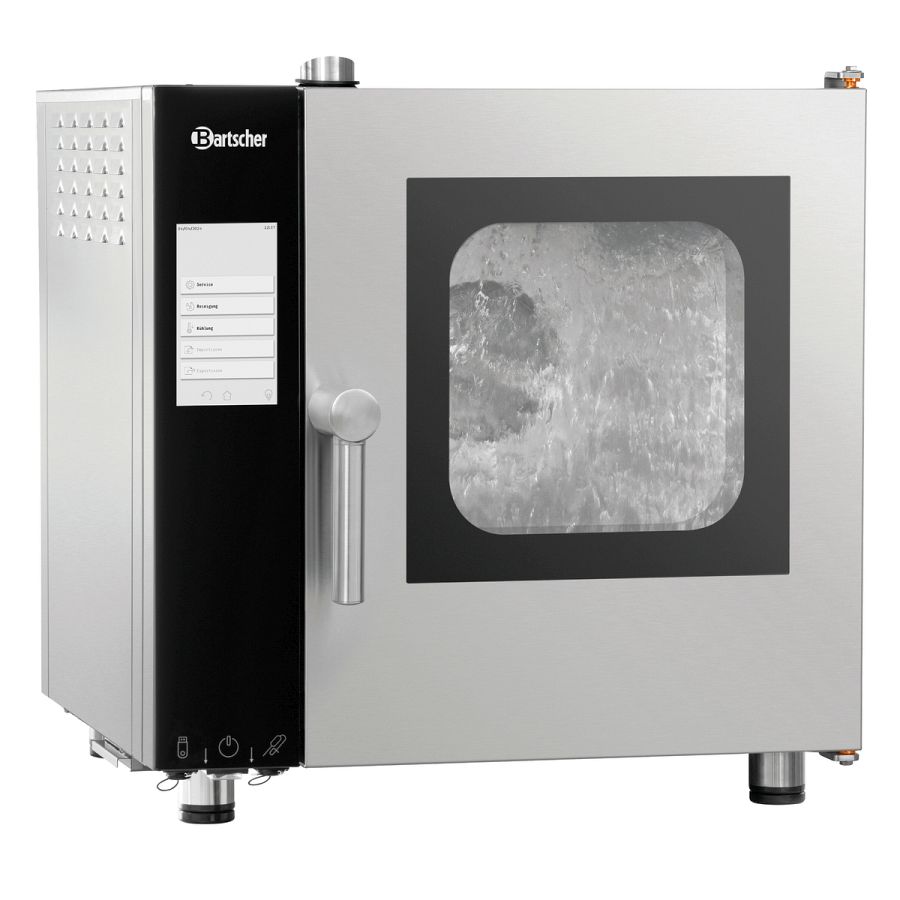 - Funktionen: Automatisches 3-stufiges Reinigungssystem mit Trocknungsprogramm, Dampferzeugung durch Direkteinspritzung, Dämpfen, Delta-T-Garen, Kombidämpfen, Niedertemperaturgaren, Reversierender Motorlauf (Lüfterräder), Umluft, Cooldown in Garphase, Manuelle Beschwadung