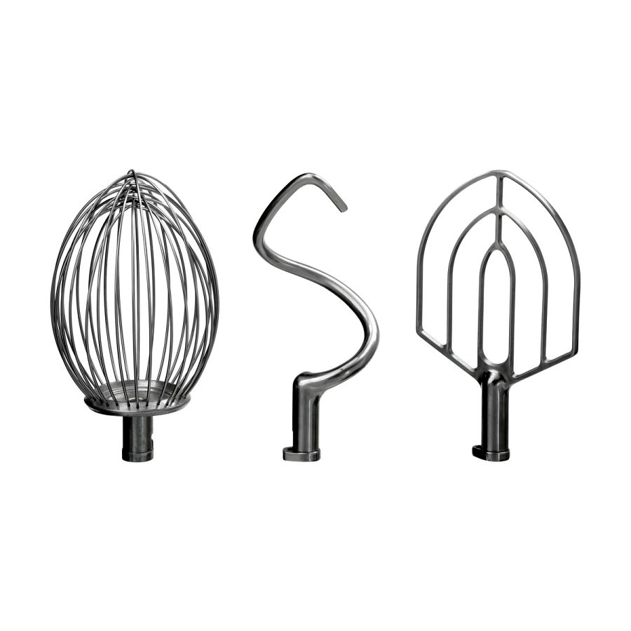 - Inklusive: 1 Flachrührer, Edelstahl, 1 Knethaken, Edelstahl, 1 Schneebesen, Edelstahl, Aluminium, 1 Schutzgitter, Edelstahl