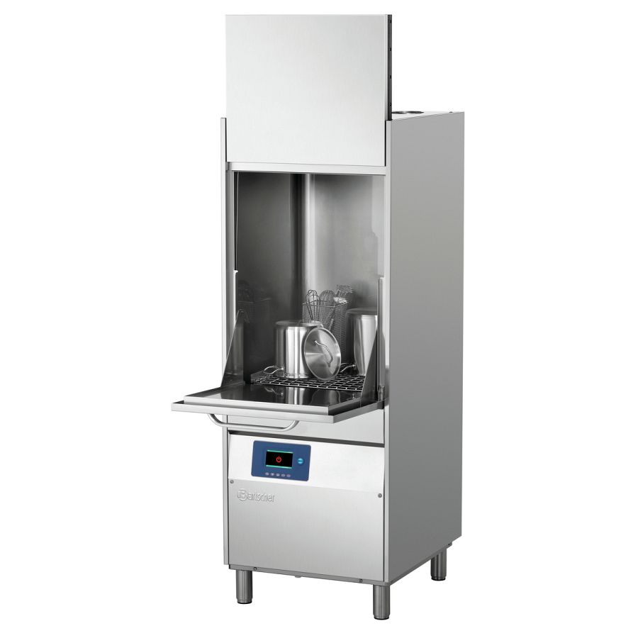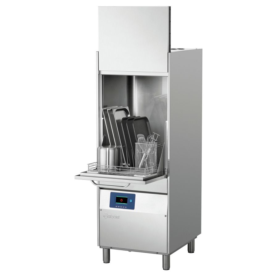 Die TS 665-1 R ist mit dem mitgelieferten Universalkorb und Tabletthalter für die Reinigung von sperrigen Spülgütern bestens geeignet. Sie sorgt für optimale Spülergebnisse bei Töpfen, Pfannen, Tabletts, Schüsseln und Schalen.