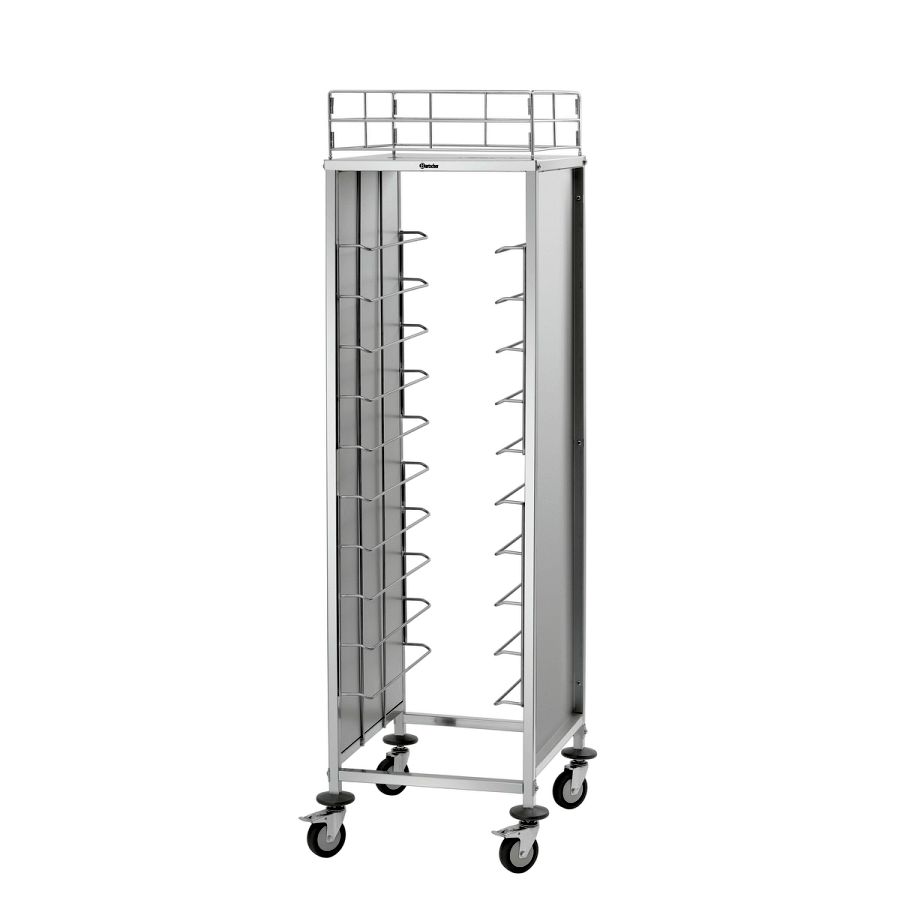 Sicherer Transport auf 10 Einschüben von GN-Behältern, Rosten und Blechen bis zu 1/1 GN. Durch die zusätzliche Stellfläche mit Transportsicherung finden auch Kannen, Gläser und Flaschen einen sicheren Platz.