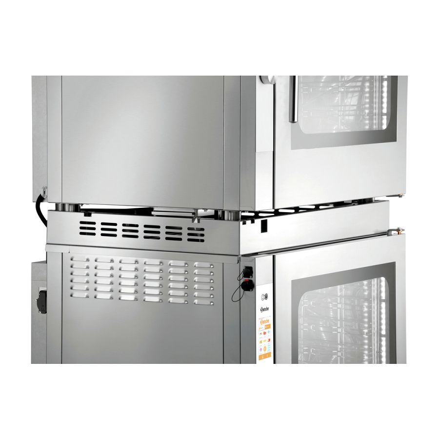 Die platzsparende Lösung: Das Verbindungskit ermöglicht das Stapeln von 2 Elektro-Kombidämpfern 1/1 GN der Serie Silversteam.