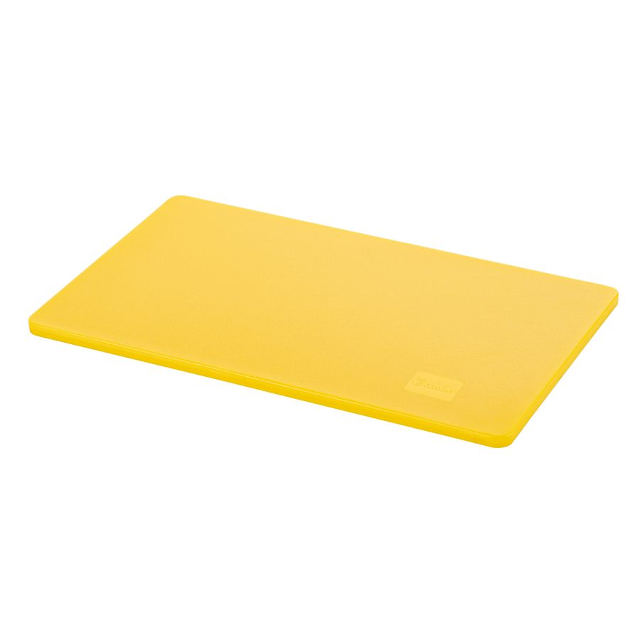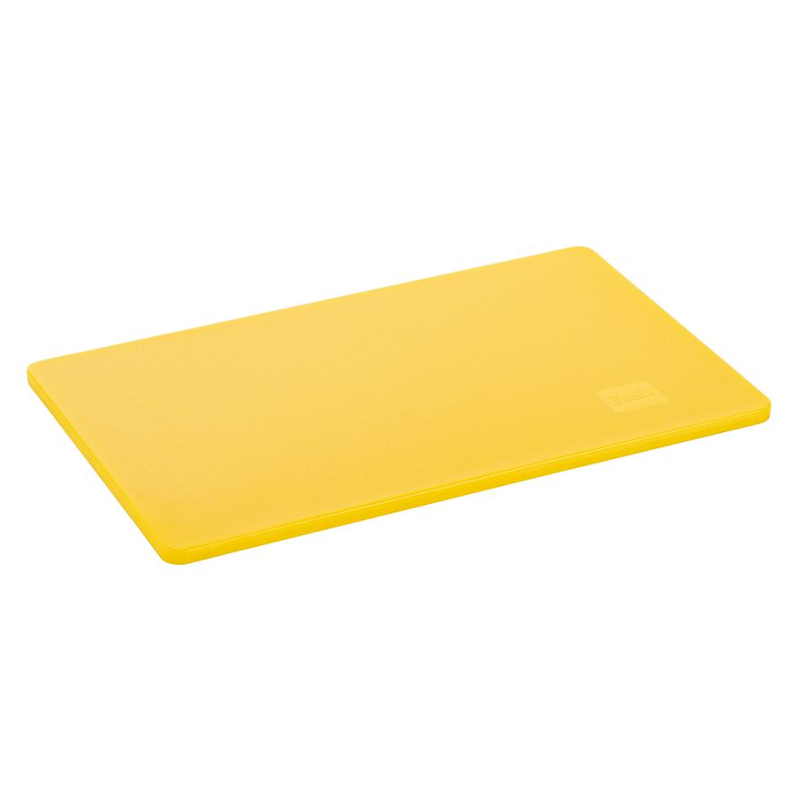 Hygiene im Fokus mit den Schneidbrettern im Format 53 × 32 cm - Verschiedenfarbige Schneidbretter für unterschiedliche Lebensmittelgruppen. Das beidseitig nutzbare, HACCP-konforme Schneidbrett in gelb - für das Schneiden von Geflügel - überzeugt durch seine Langlebigkeit.