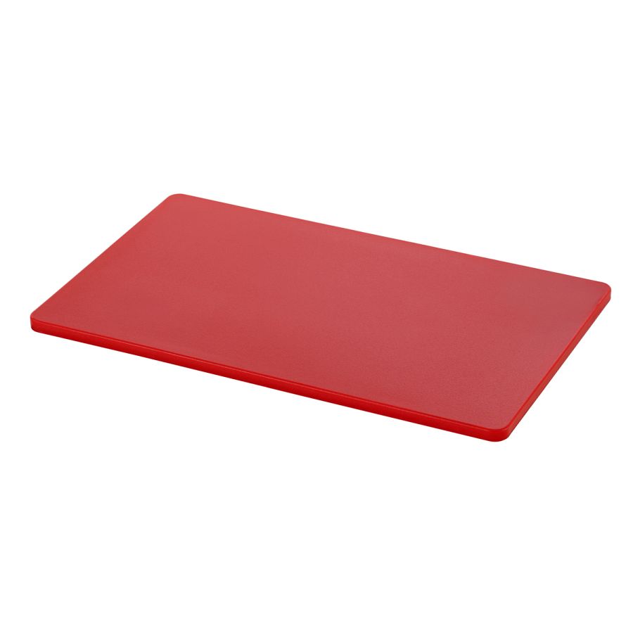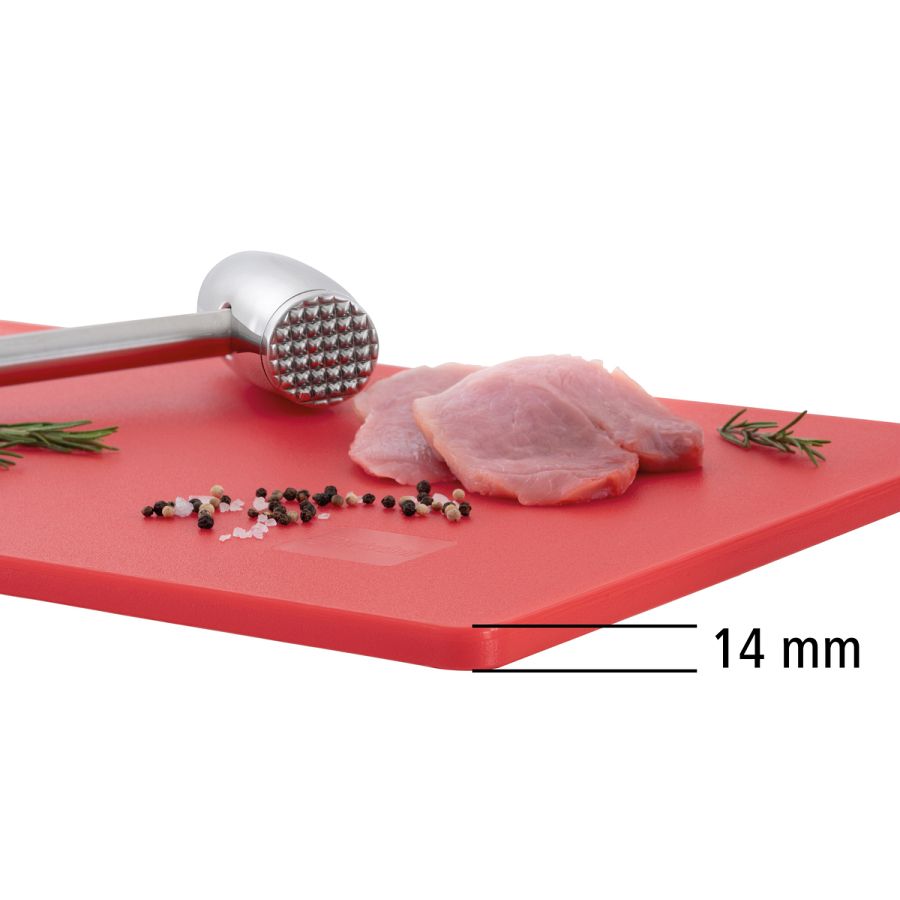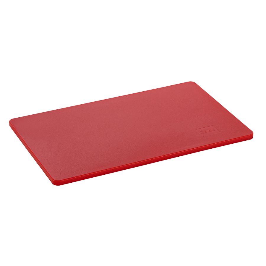 Hygiene im Fokus mit den Schneidbrettern im Format 53 × 32 cm - Verschiedenfarbige Schneidbretter für unterschiedliche Lebensmittelgruppen. Das beidseitig nutzbare, HACCP-konforme Schneidbrett in rot - für rotes Fleisch wie z. B. Rind, Schwein oder Wild - überzeugt durch seine Langlebigkeit.