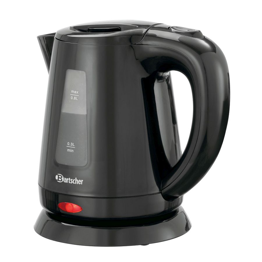 Es werden gelegentlich nur kleine Mengen kochendes Wasser benötigt oder der Platz ist einfach begrenzt? Da ist dieser Wasserkocher mit 0,8 Litern Fassungsvermögen das ideale Gerät. Bestens geeignet für den Einsatz in Hotelzimmern oder Teeküchen.