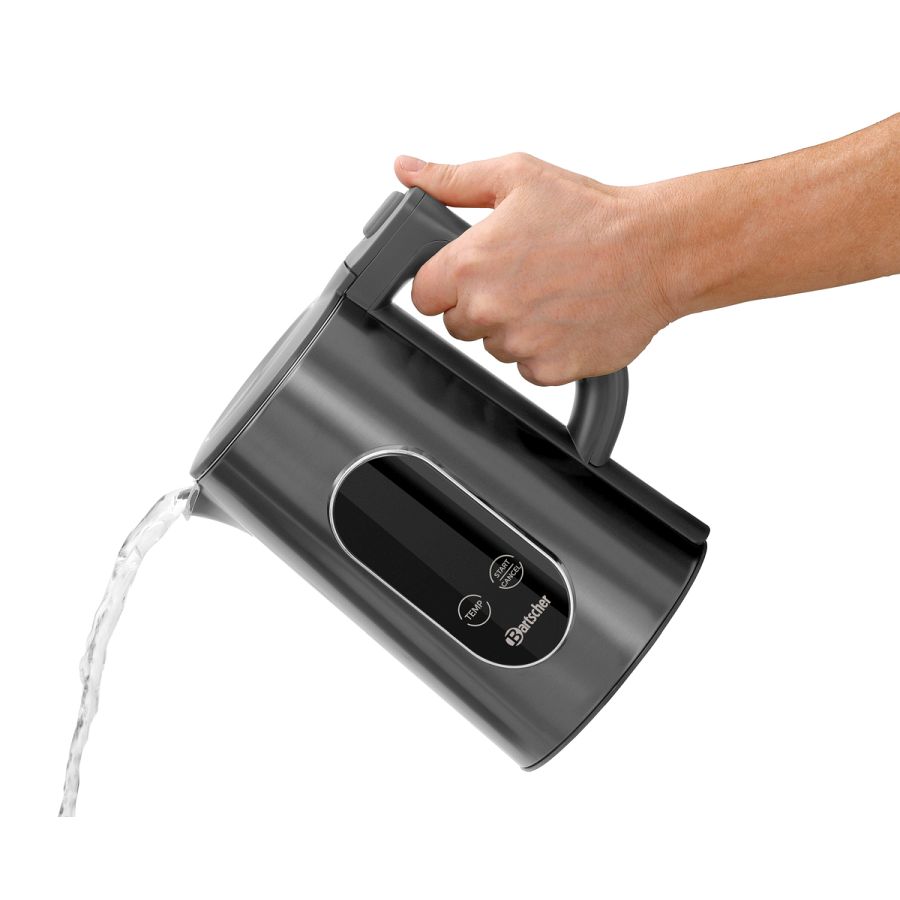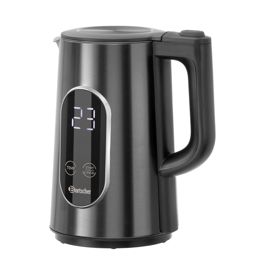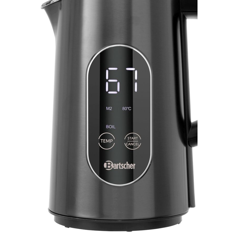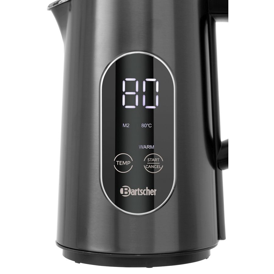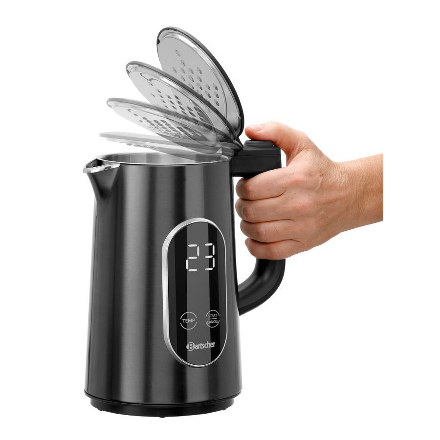 Der leistungsstarke Wasserkocher mit großem Display und Touch-Bedienung besticht durch seine edle Optik. Die Warmhaltefunktion hält das Wasser eine Stunde lang zuverlässig auf Temperatur.