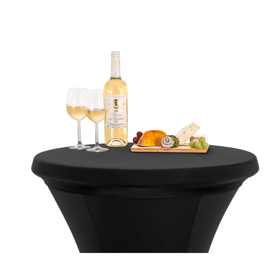 Der schwarze Ersatz-Schonbezug ermöglicht ein schnelles und unkompliziertes Wechseln des Schonbezuges aus dem Stehtisch-Hussen-Set 700 S - auch während der Veranstaltung.
