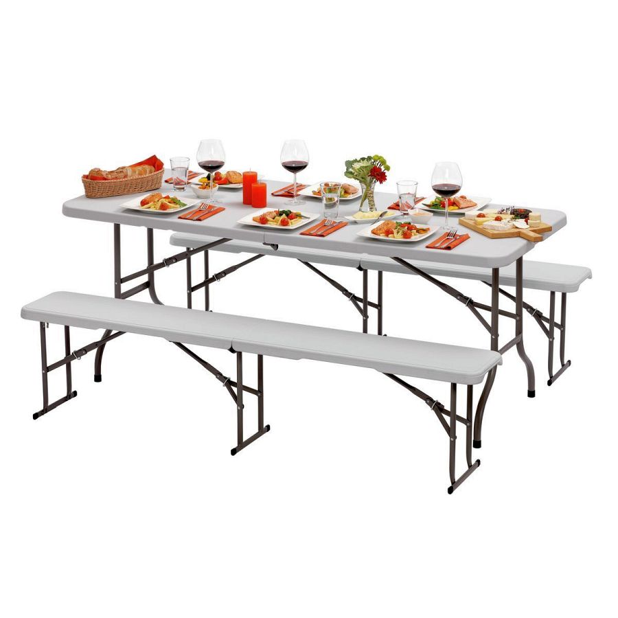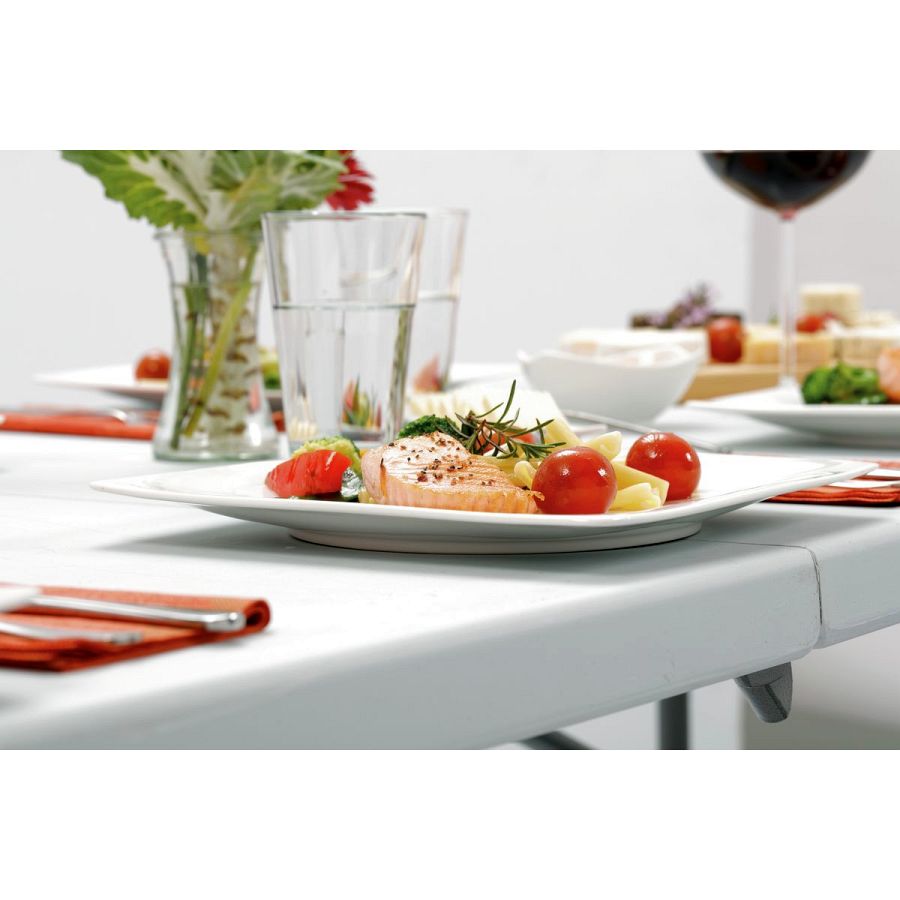 Der stabile Klapptisch mit robuster Kunststoffoberfläche ist mit seiner leichten und kompakten Ausführung schnell und multifunktional einsetzbar.