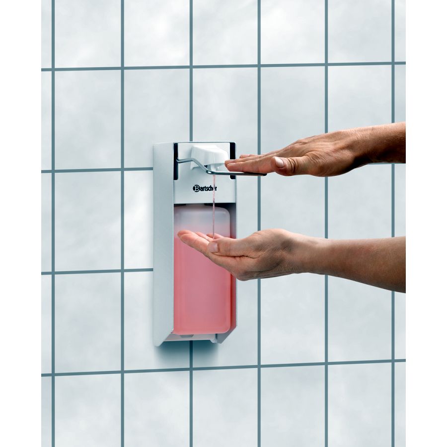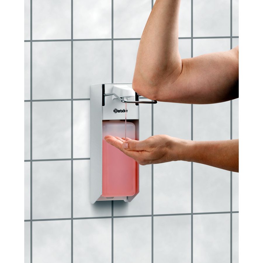Für eine hygienische Entnahme handelsüblicher Flüssigseifen durch Einhand- oder Ellbogenbedienung