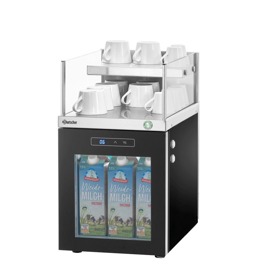 Aus zwei machen wir eins: Diese Kombination aus Milchkühlschrank und Tassenwärmer ist die perfekte Ergänzung für Kaffeevollautomaten. Mit vorgewärmten Tassen und perfekt gekühlter Milch zum totalen Kaffee-Hochgenuss. Absolut genial sind die Platz- und Energieeinsparung - und dennoch fasst der Kühlschrank bis zu 6 Tetra Paks®.