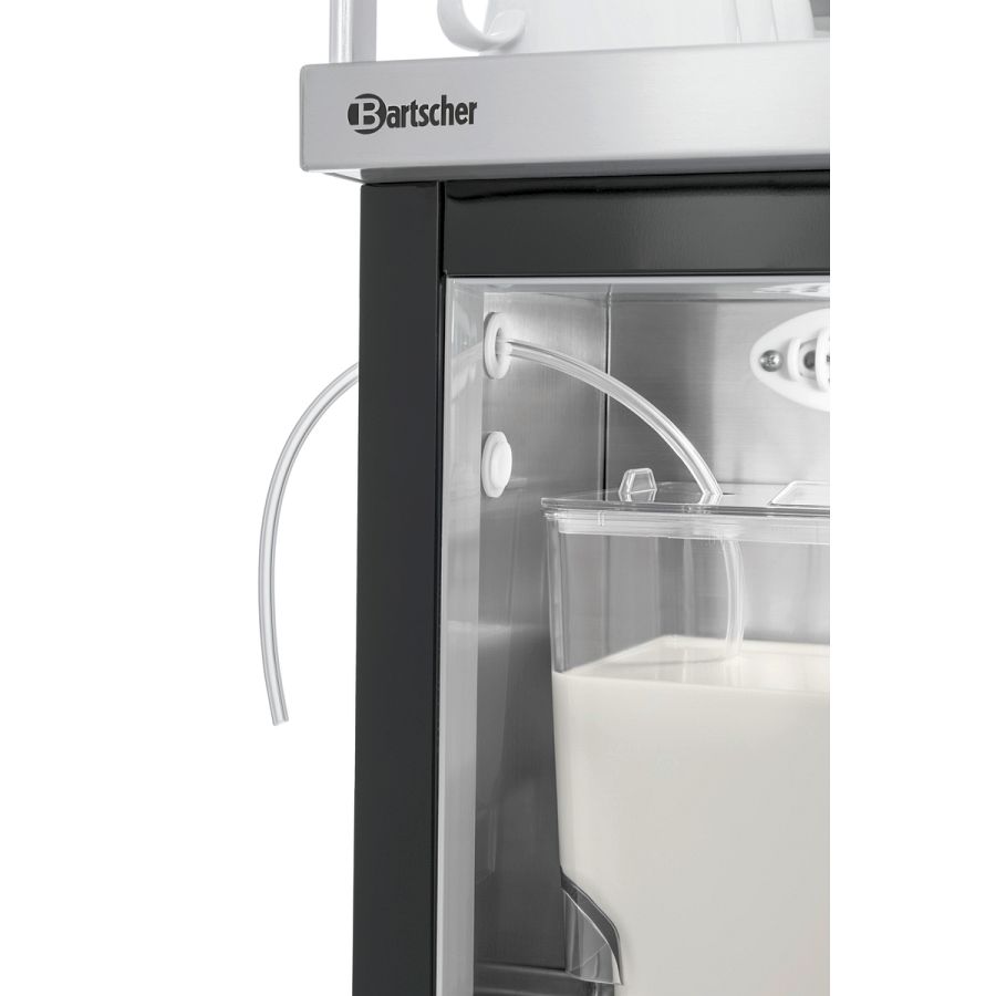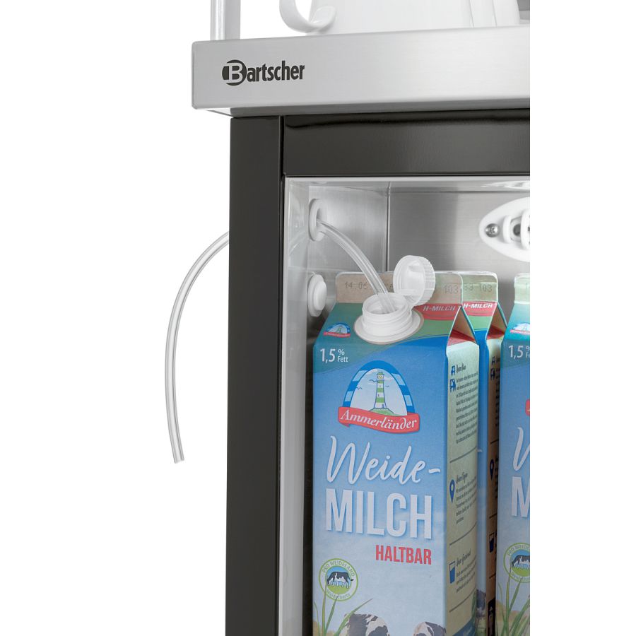 - Eigenschaften: Ausgelegt für z. B. 6 Tetra Paks® à 1 Liter, Direkte Milchzufuhr durch seitliche Öffnungen am Gerät, LED-Beleuchtung, separat schaltbar