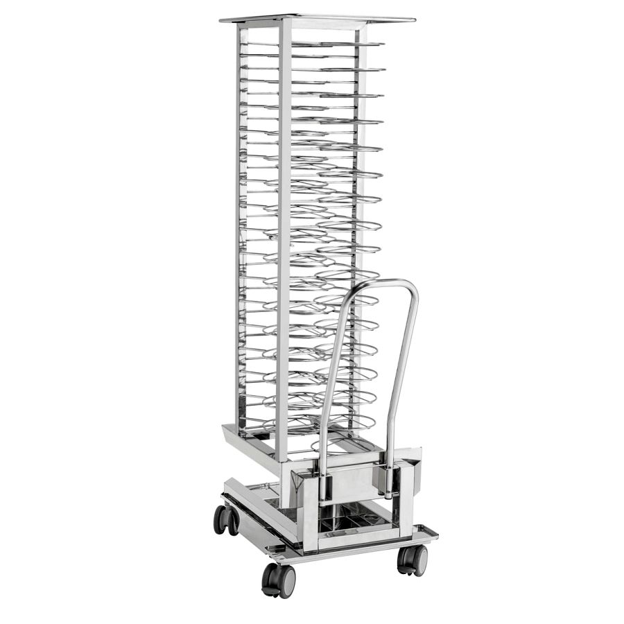 Große Mengen in kurzer Zeit: Mit dem Tellerhordenwagen können bis zu 50 fertig angerichtete Teller im Kombidämpfer Gigasteam 20110DRS zeitgleich regeneriert und anschließend herausgegeben werden. Dies spart Zeit - sowohl im Küchenbereich als auch bei der Speisenausgabe im Servicebereich.