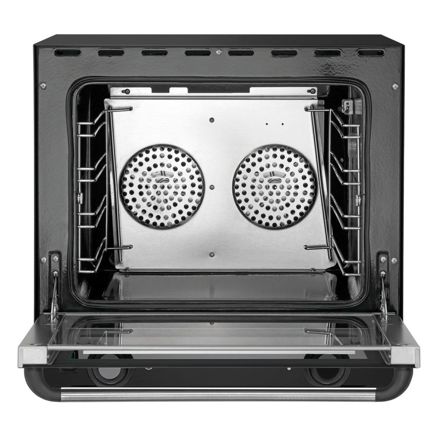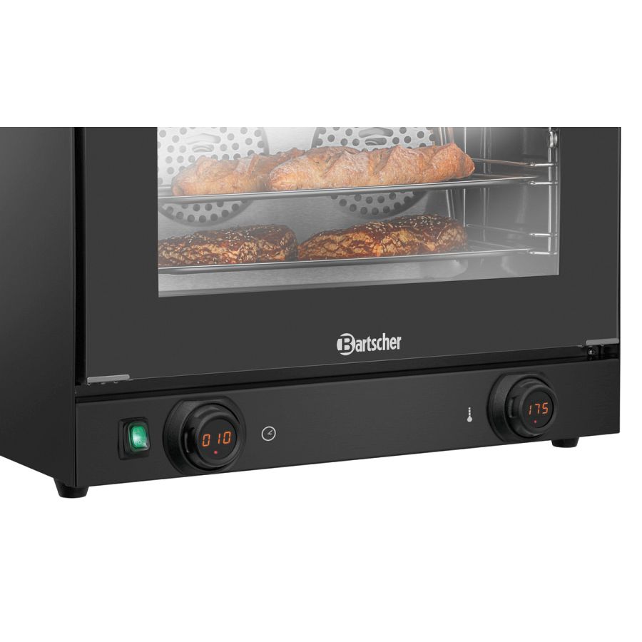 Der Heißluftofen in mattem Schwarz setzt nicht nur optisch ein Statement, sondern überzeugt auch mit zwei leistungsstarken Motoren für eine gleichmäßige und kraftvolle Luftzirkulation. Ausgestattet mit den bewährten Features der AT-Serie und der intuitiven Bartscher MDI-Steuerung steht er für zuverlässige Performance.