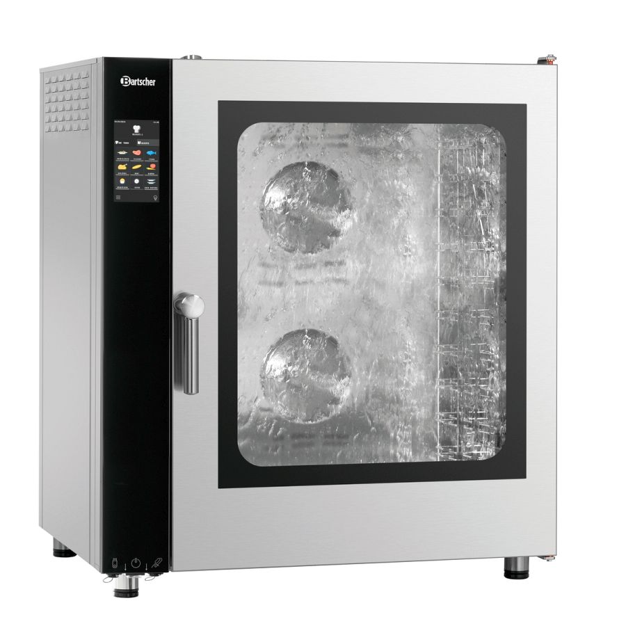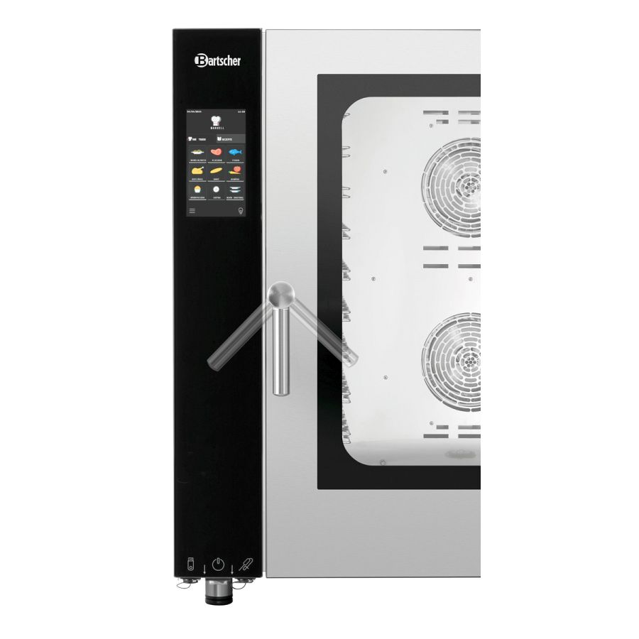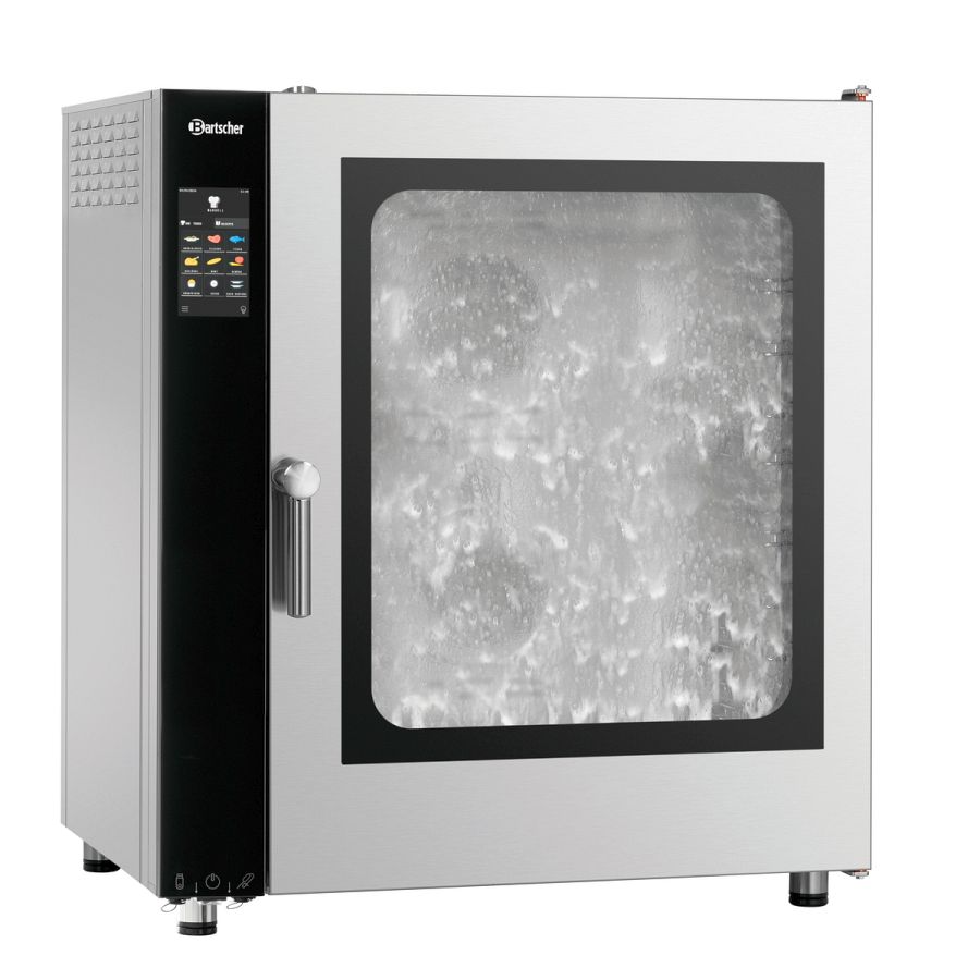 - Funktionen: Automatisches 3-stufiges Reinigungssystem mit Trocknungsprogramm, Dampferzeugung durch Direkteinspritzung, Dämpfen, Delta-T-Garen, Kombidämpfen, Niedertemperaturgaren, Reversierender Motorlauf (Lüfterräder), Umluft, Cooldown in Garphase, Manuelle Beschwadung