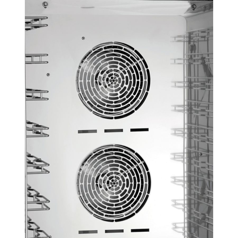 - Funktionen: Dampferzeugung durch Direkteinspritzung, Dämpfen, Delta-T-Garen, Kombidämpfen, Niedertemperaturgaren, Reversierender Motorlauf (Lüfterräder), Umluft, Cooldown in Garphase, Manuelle Beschwadung