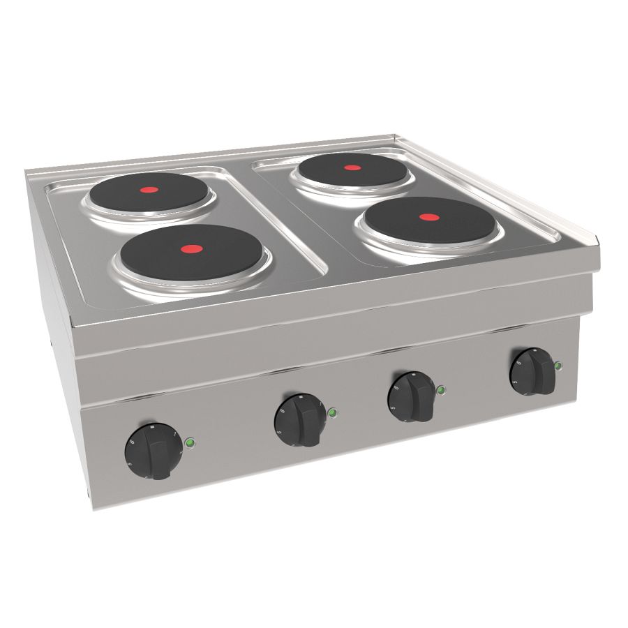 - mit 4 runden 2 kW-Kochplatten aus Gusseisen