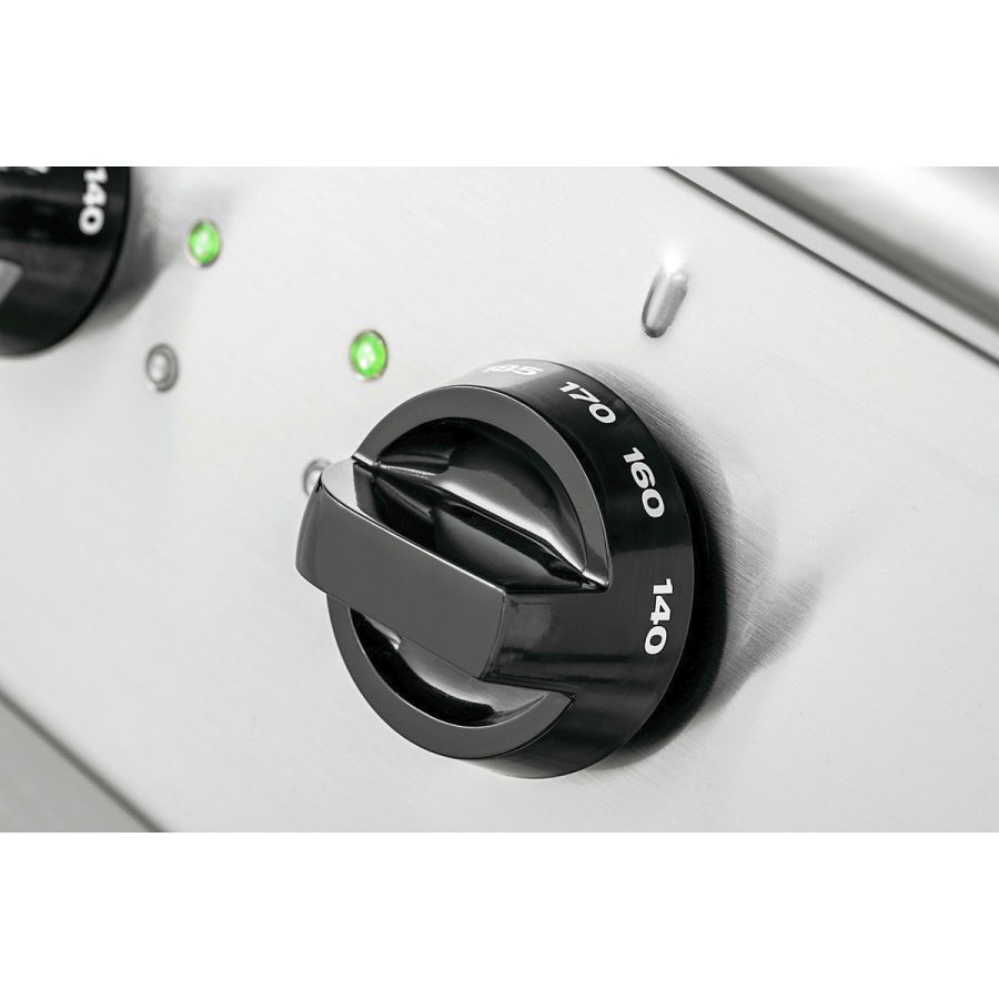 • Eigenschaften: Abgerundete Ecken, Becken mit großer Kaltzone, Extra breiter Beckenrand, Fettauffangbehälter mit Filter, Präzisionsthermostat, Sicherheitsthermostat mit fester Eichung