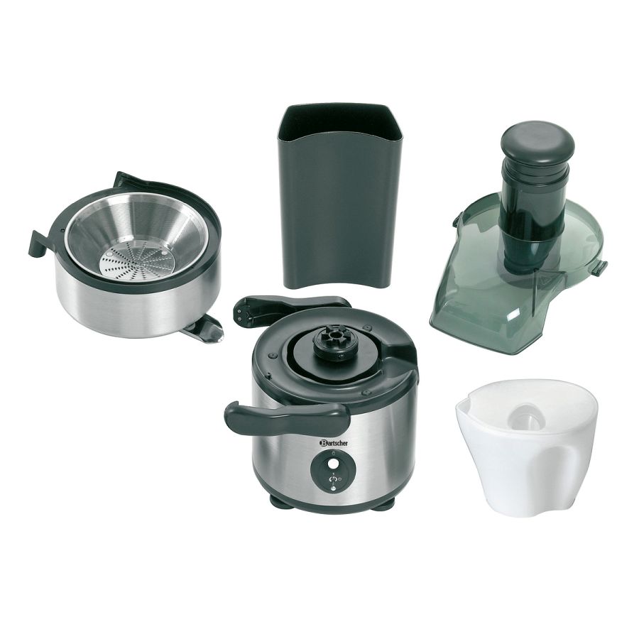 • Eigenschaften: Leistungsstarker, geräuscharmer Motor, Fein-Sieb aus Edelstahl für den perfekten Fruchtgenuss, Anbauteile sind spülmaschinengeeignet (ausgenommen Basiseinheit)