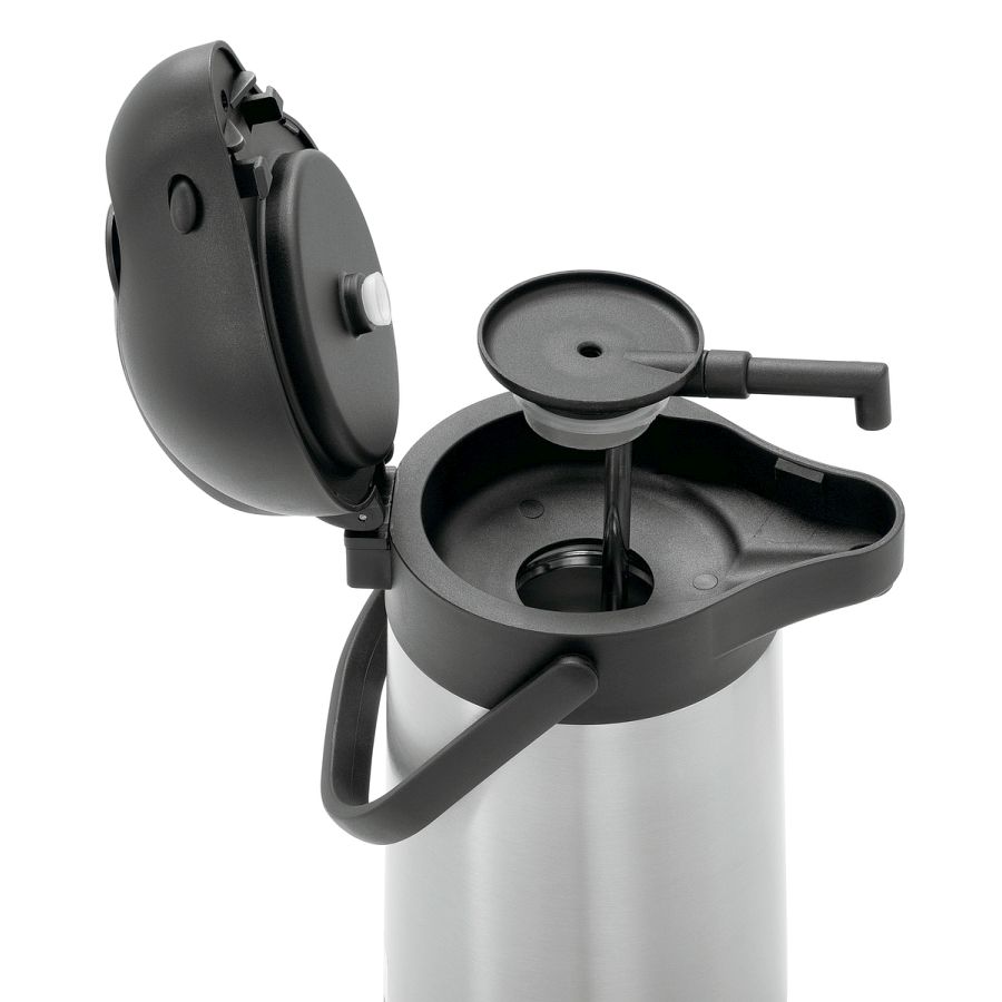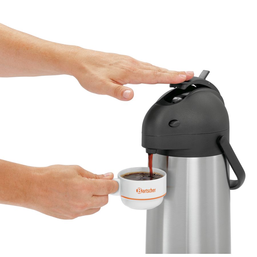 Unkompliziert und zeitsparend - Ohne Umschütten kann der frisch aufgebrühte Kaffee direkt am Buffet in der Isolierpumpkanne serviert werden.