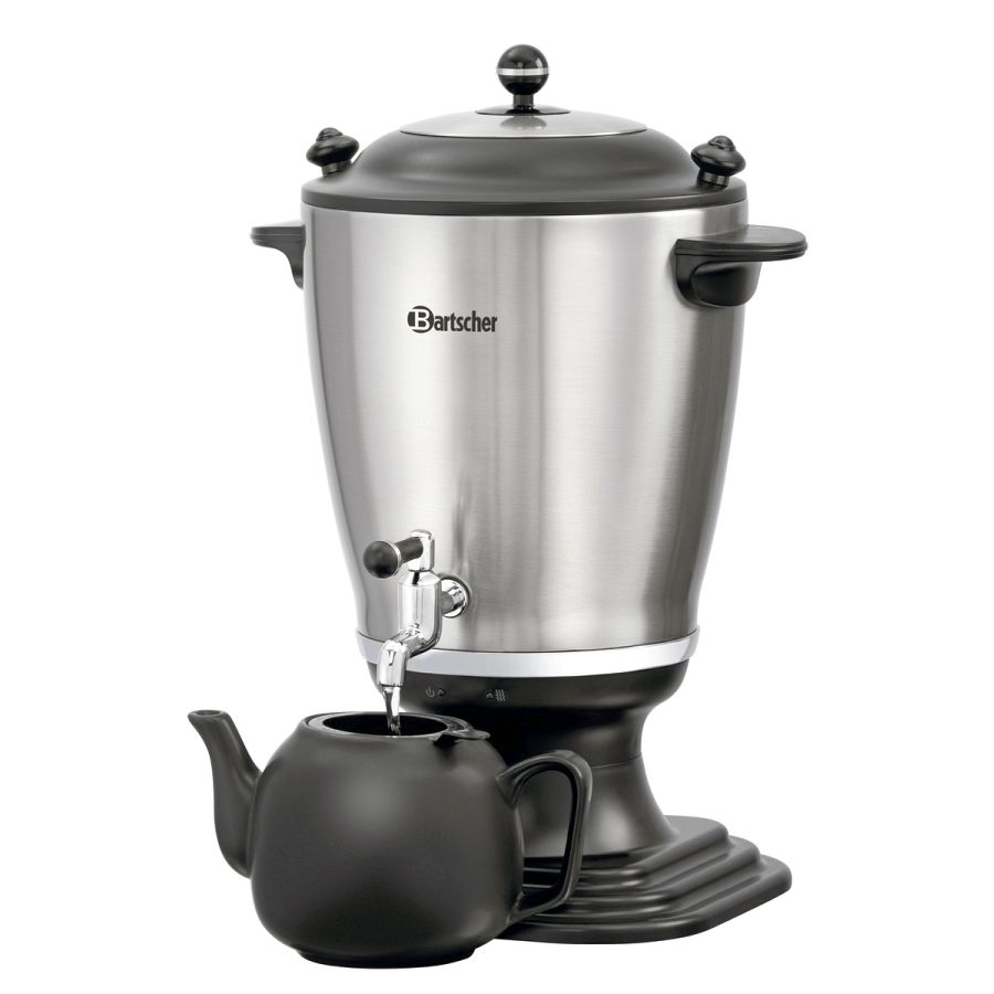 Teegenuss der besonderen Art: Mit dem Samowar können mehr als 3 Liter Wasser aufgekocht und langfristig warmgehalten werden. Das heiße Wasser sowie der frische Tee in der Kanne behalten ihre optimale Trinktemperatur. Dank der beiden Heizspiralen ist die Warmhaltefunktion besonders stromsparend.