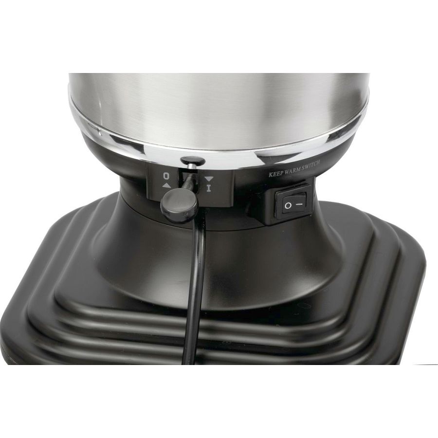 - Heizelement: 2 Heizspiralen, 1,85 kW und 0,1 kW, Sieden bei 100 °C mit 1,85 kW und 0,1 kW-Heizspirale, Warmhalten bei 70 °C mit 0,1 kW-Heizspirale