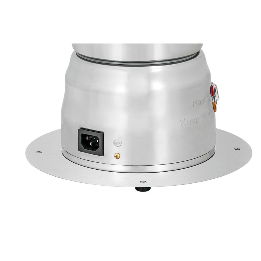 • Heizelement: 2 Heizspiralen, 1,5 kW und 0,5 kW , Aufkochen bei 100 °C mit 1,5 kW-Heizspirale, Warmhalten bei 90 °C mit 0,5 kW-Heizspirale