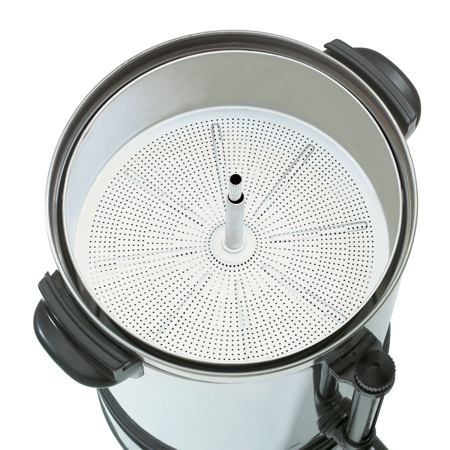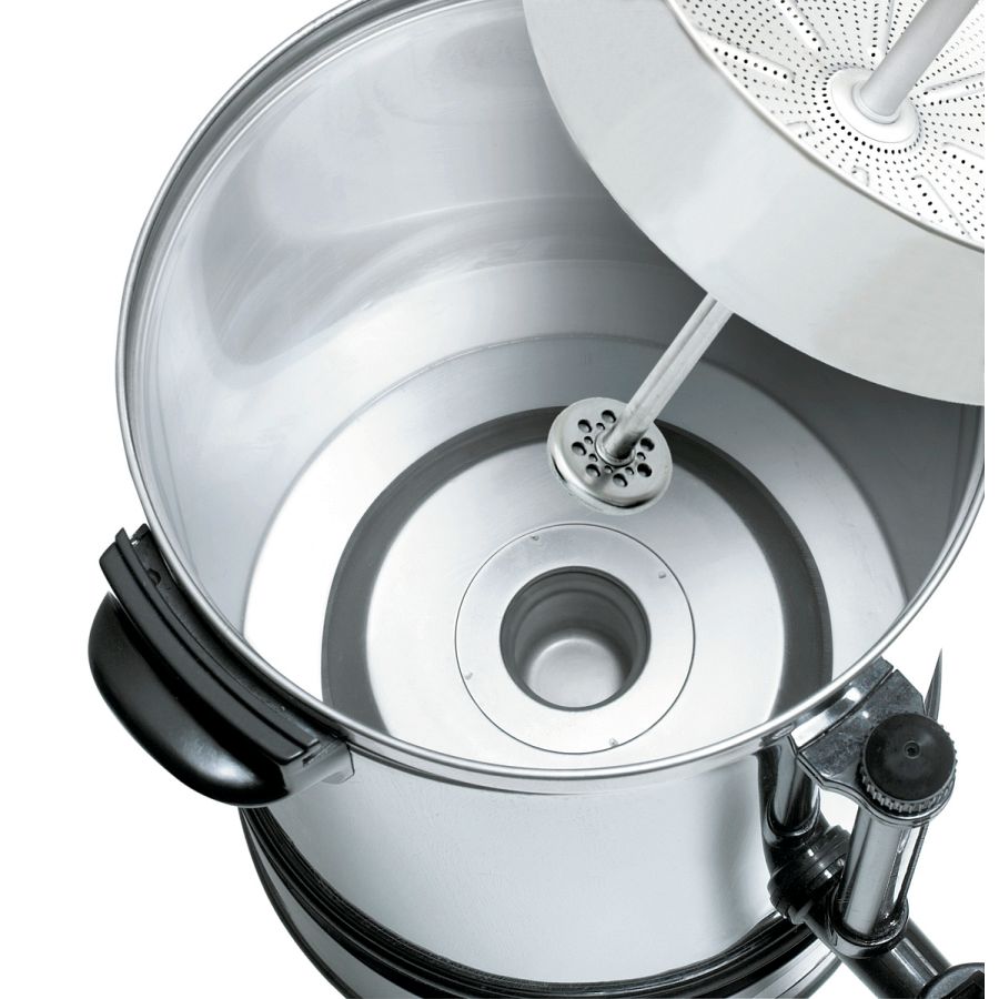 Die Regina Plus 90 brüht bis zu 15 Liter Filterkaffee in 60 Minuten. Die Maschine überzeugt durch Features wie dem Entkalkungssignal, der Füllstandsanzeige und der Warmhaltefunktion mit optimierter Edelstahlheizmulde.
