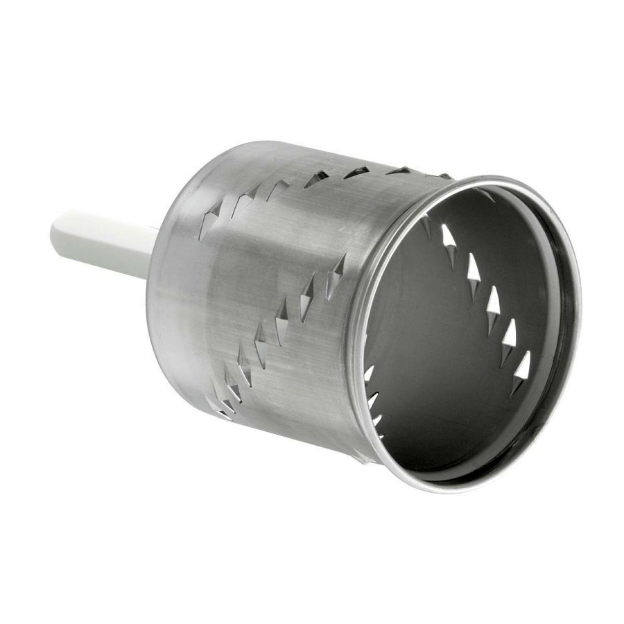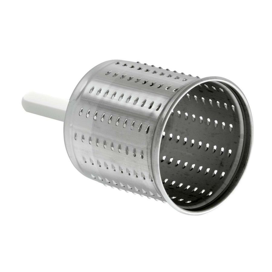 - Set bestehend aus: 1 Feintrommel (für Hartkäse, Nüsse, Paniermehl), 1 Kronen-Hiebtrommel (für Kartoffelpürree, Reibekuchen, Zwiebeln), 1 Stäbchentrommel (für lange Stäbchen)