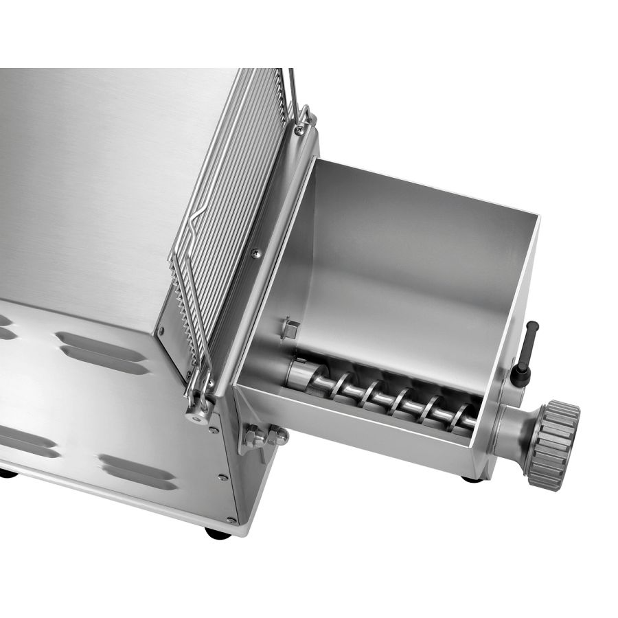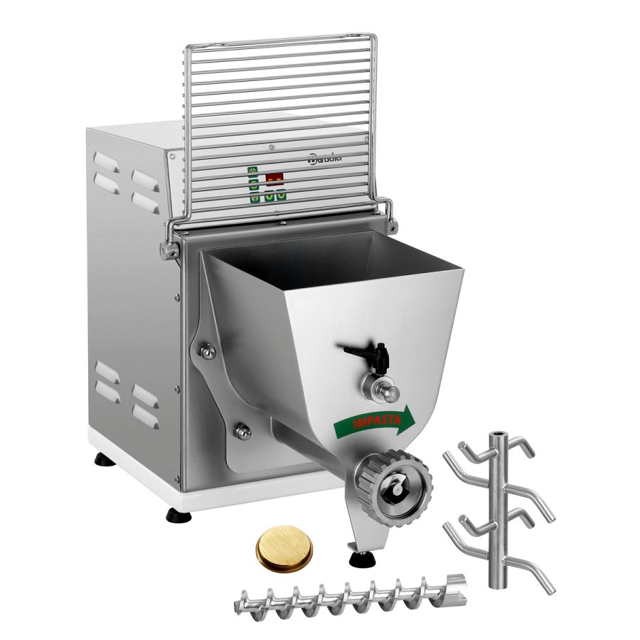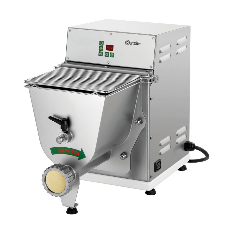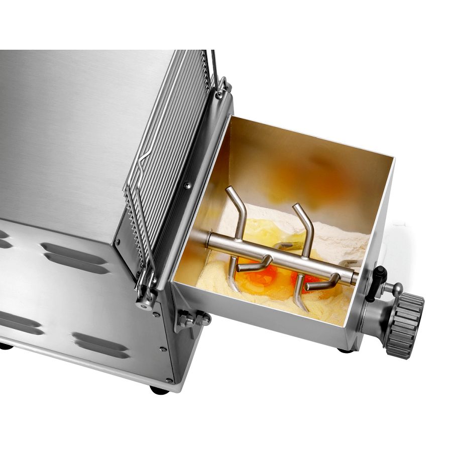 - Eigenschaften: 5 sichere Standfüße, Geräuscharm (kleiner 70 dB), Knetwelle und Transportschnecke entnehmbar, Teigbehälter abnehmbar, Zum Kneten und Ausrollen von 12 verschiedenen Pasta-Sorten (Pasta-Matrizen optional erhältlich), Mikroschalter am Schüsseldeckel