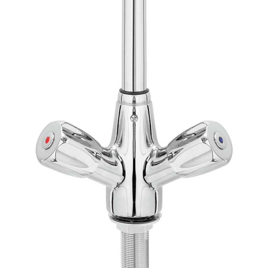 Unverzichtbar in jeder Spülküche - Zweigriffmischer mit praktischer Einlochbohrung und einer Durchflussmenge von bis zu 26 Litern.