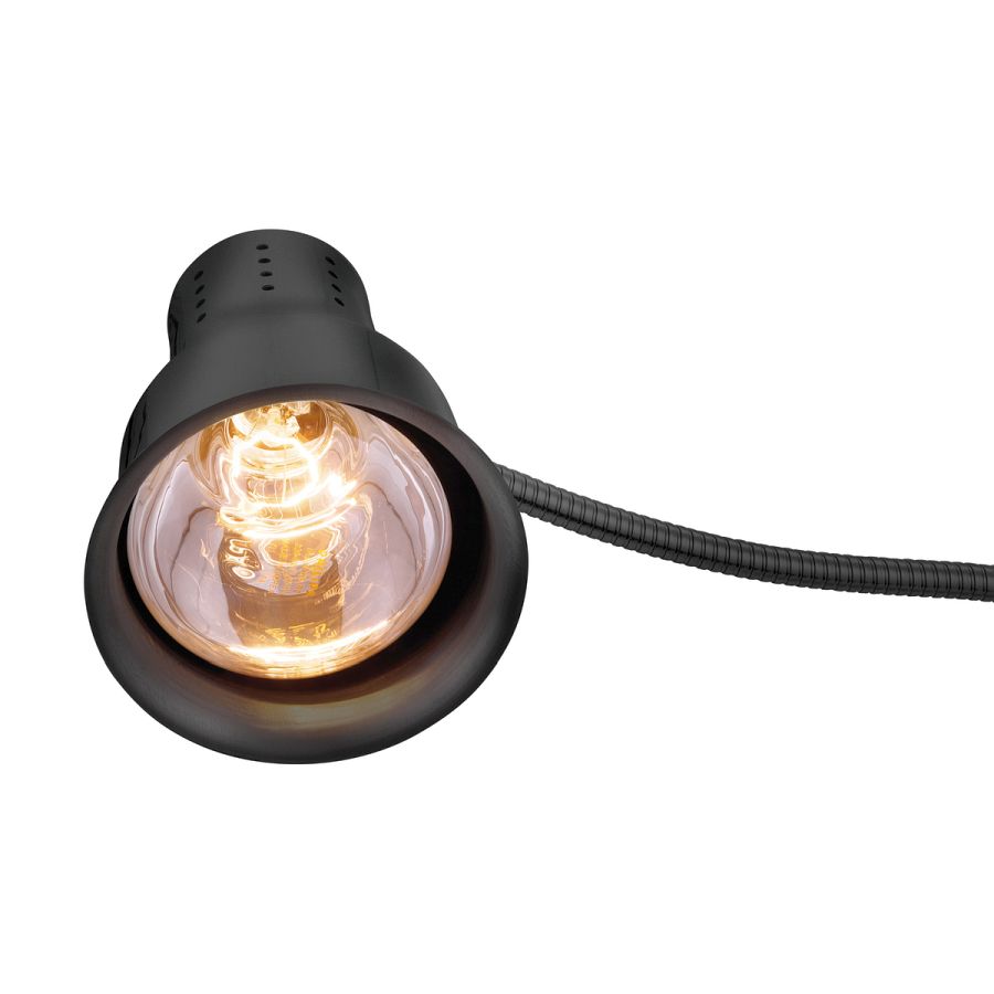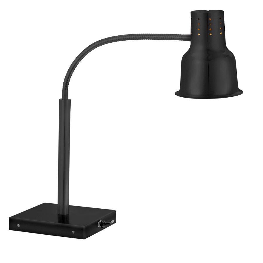 Die Wärmelampe in edlem Schwarz hält Speisen mit Infrarotwärme zuverlässig warm. Dank des flexiblen Lampenarms ist sie der perfekte Küchenhelfer - ob bei der Vorbereitung, der Speiseausgabe oder am Buffet.