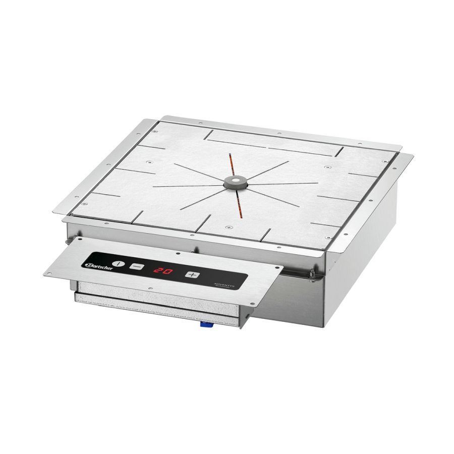 Mit dem "unsichtbaren Induktionswarmhaltesystem ist die Arbeitsplatte wahlweise als Warmhaltestelle oder Arbeitsfläche nutzbar. Verbaut unter einer Arbeitsplatte ermöglicht die beeindruckende Technik, dass ein Chafing Dish auf bis zu 100 °C erwärmt wird während die Arbeitsplatten-Temperatur maximal 35 °C erreicht.
