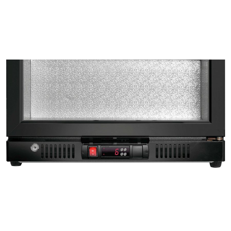 Der Barkühlschrank mit 112 Litern Fassungsvermögen, Innenbeleuchtung und doppelverglaster, selbstschließender Tür kühlt Ihre Getränke zuverlässig. Die elektronische Regelung mit Digitalanzeige ermöglicht die exakte Einstellung der gewünschten Temperatur.