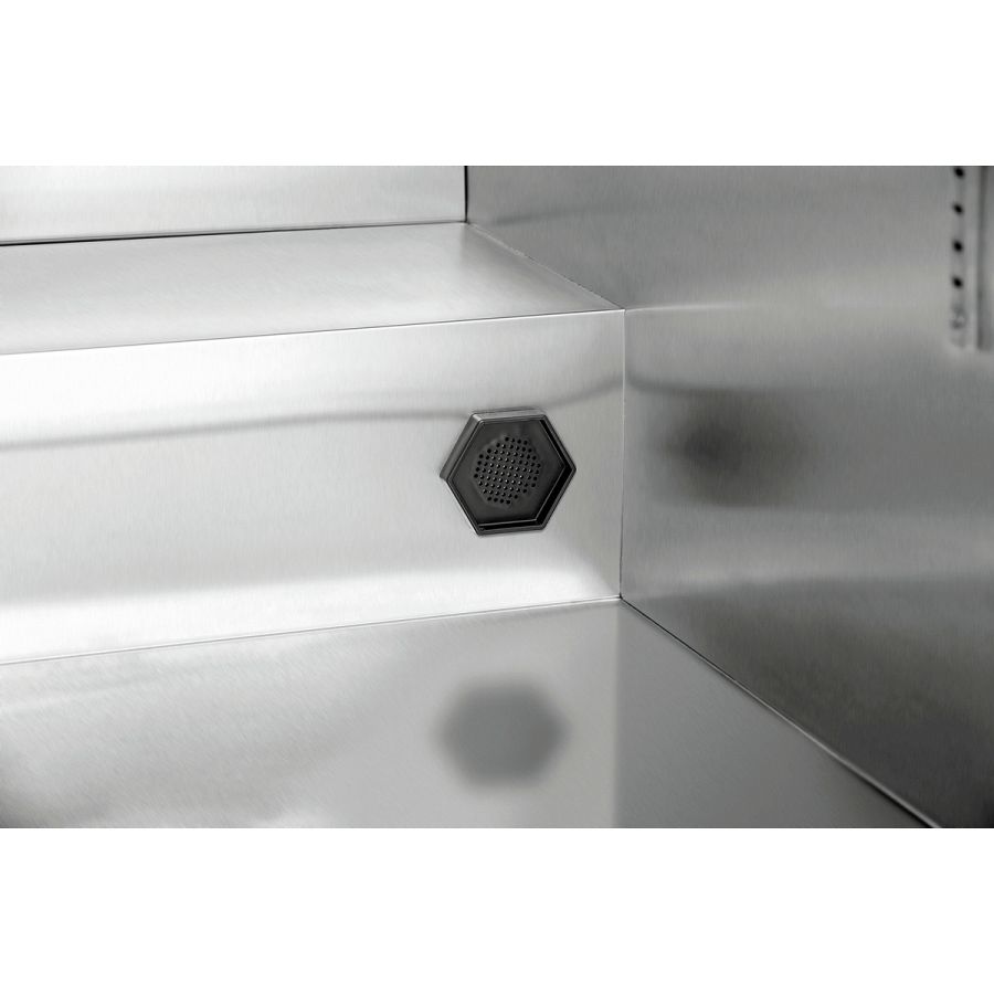 • Inklusive: 2 Aktivkohlefilter, 1 Auffangblech, 7 Edelstahlroste, 1 Griff mit Montagematerial, 2 Hängestangen + 6 Fleischer-Haken, 2 Schlüssel, 2 Luftfeuchtigkeitsfilter + 2 Ersatzfilter + Halterung + Abtropfschale