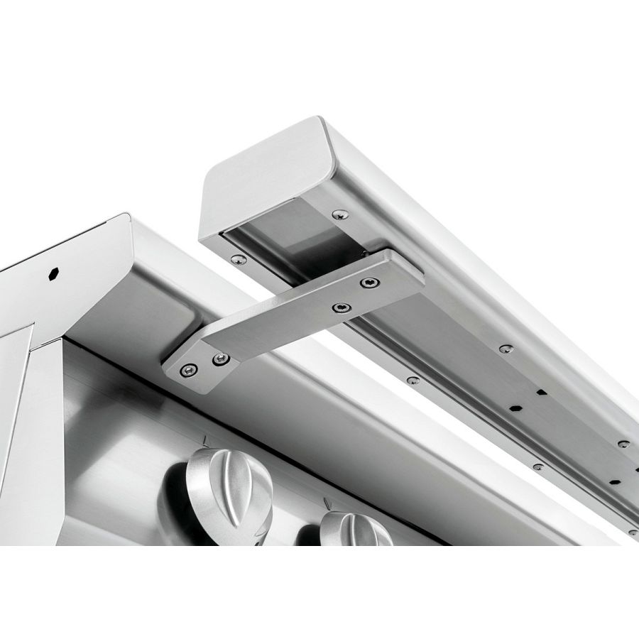 Die Geräte der Serie 700 mit einer Küchen-Reling zu versehen bietet nicht nur eine stilvolle Ergänzung, sondern optimiert auch die Sicherheit und Funktionalität. Durch den erweiterten Abstand zum Gerät verringert sich effektiv die Verbrennungsgefahr an den Hochtemperaturzonen. Darüber hinaus ermöglicht die robuste Konstruktion eine komfortable Zwischenlagerung von Töpfen, Pfannen und Tellern.