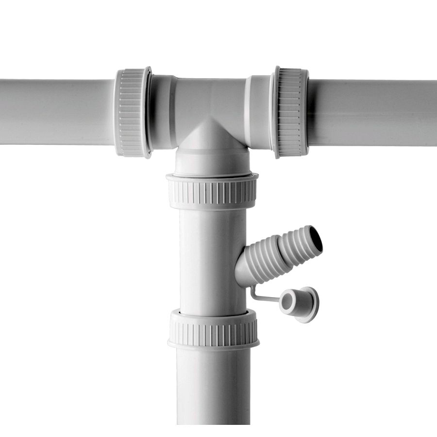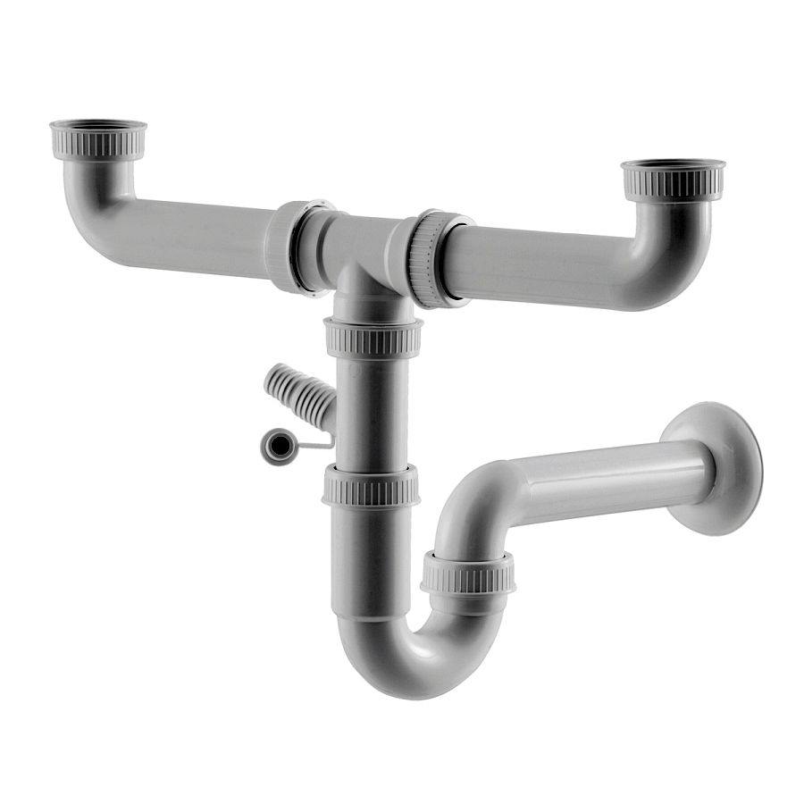 Zuverlässiger und geruchsvermeidender Ablauf für Wasch- und Schmutzwasser mithilfe des Siphons für Spülen und Spülcenter mit zwei Becken. Dank des integrierten Geräteanschlusses wird für den Einsatz von beispielsweise einer Spülmaschine kein zusätzlicher Ablauf benötigt.